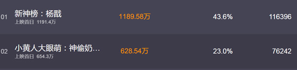 截至小编发稿,目前两部电影上映首日取得的票房分别是《新神榜:杨戬》1173万元、《小黄人大眼萌:神偷奶爸前传》639万元,《新神榜:杨戬》暂时领先,最终两部电影的PK结果如何,我们拭目以待。