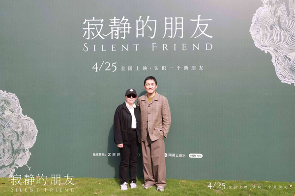 当天,电影《寂静的朋友》于上海西郊宾馆户外场地举行影片媒体发布会,现场树木围绕,微风拂起,鸟鸣清亮。电影官方将发布会置于绿意之间,现实与影片在当下形成了奇妙的回响,风鸟草木与人类共同完成了这场对话与互动。
