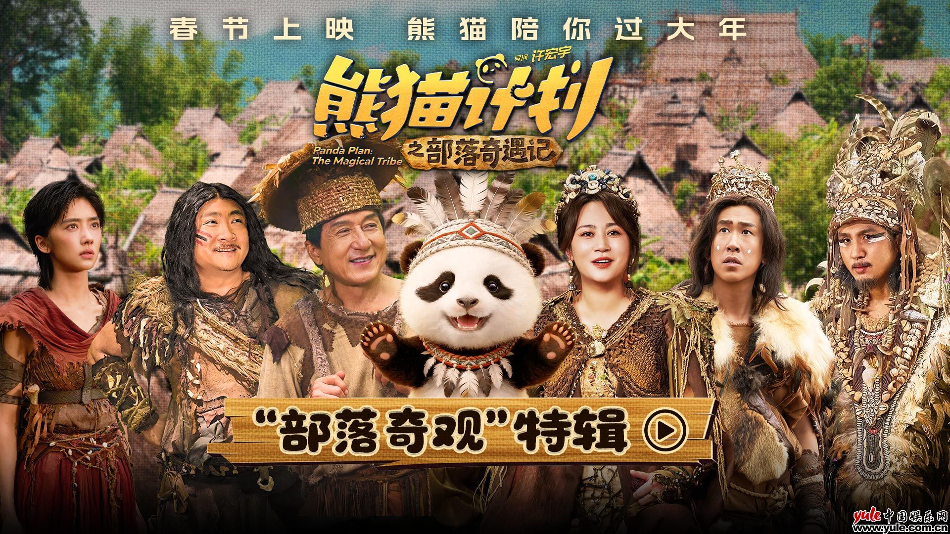 电影《熊猫计划之部落奇遇记》由许宏宇执导,胡胡、成龙、马丽、乔杉、于洋领衔主演,王影璐、张子栋特邀主演,王成思、柯达、宋木子、冯满、王星主演,潘斌龙、于荣光、胡笑源友情客串,将带领观众开启神秘部落冒险,共赴一场有笑有爱的合家欢治愈之旅。影片将于2026年春节上映,熊猫陪你过大年!