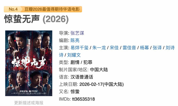 从题材到阵容,从现实意义到完成度,《惊蛰无声》都展现出强烈的春节档核心竞争力。2026年大年初一,这场当代谍战“无声却惊心”的博弈,或许将成为春节档最具讨论度的观影事件之一。
