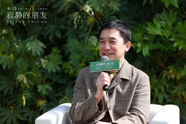 当天,电影《寂静的朋友》于上海西郊宾馆户外场地举行影片媒体发布会,现场树木围绕,微风拂起,鸟鸣清亮。电影官方将发布会置于绿意之间,现实与影片在当下形成了奇妙的回响,风鸟草木与人类共同完成了这场对话与互动。